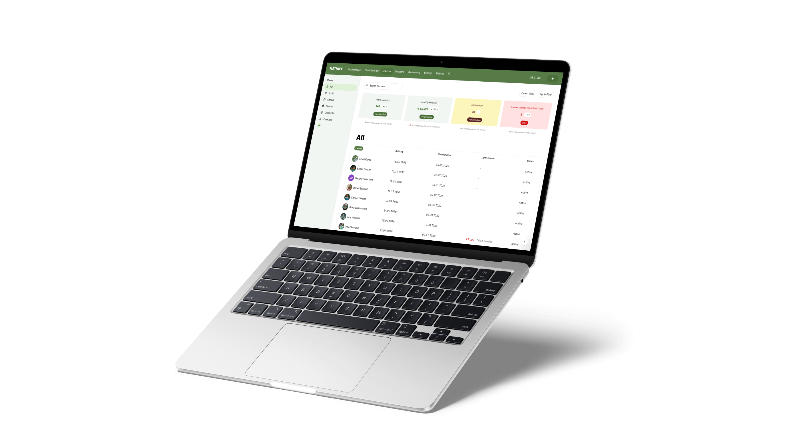 Die Live-Ansicht ist ein zentrales Feature von MATNIFY und zeigt belegte und freie Plätze in Echtzeit. Für Hallen und Outdoor-Plätze gleichermaßen. Mitglieder*innen werden durch Avatare dargestellt – so erkennt man auf einen Blick, was gerade wo passiert. Buchungen, die gleich enden, Trainerstunden und auch Tuniere können spielend leicht verfolgt und koordiniert werden.
